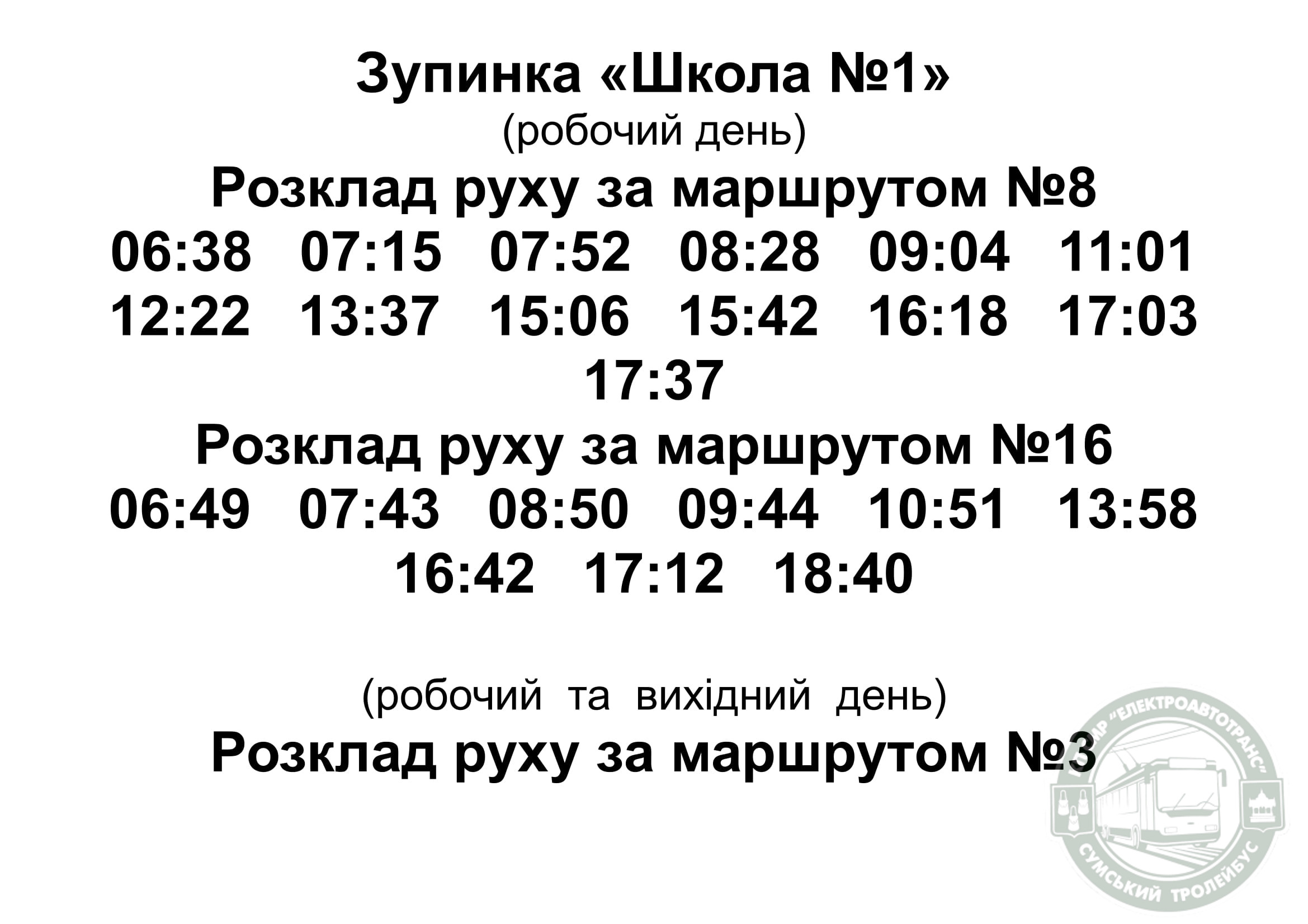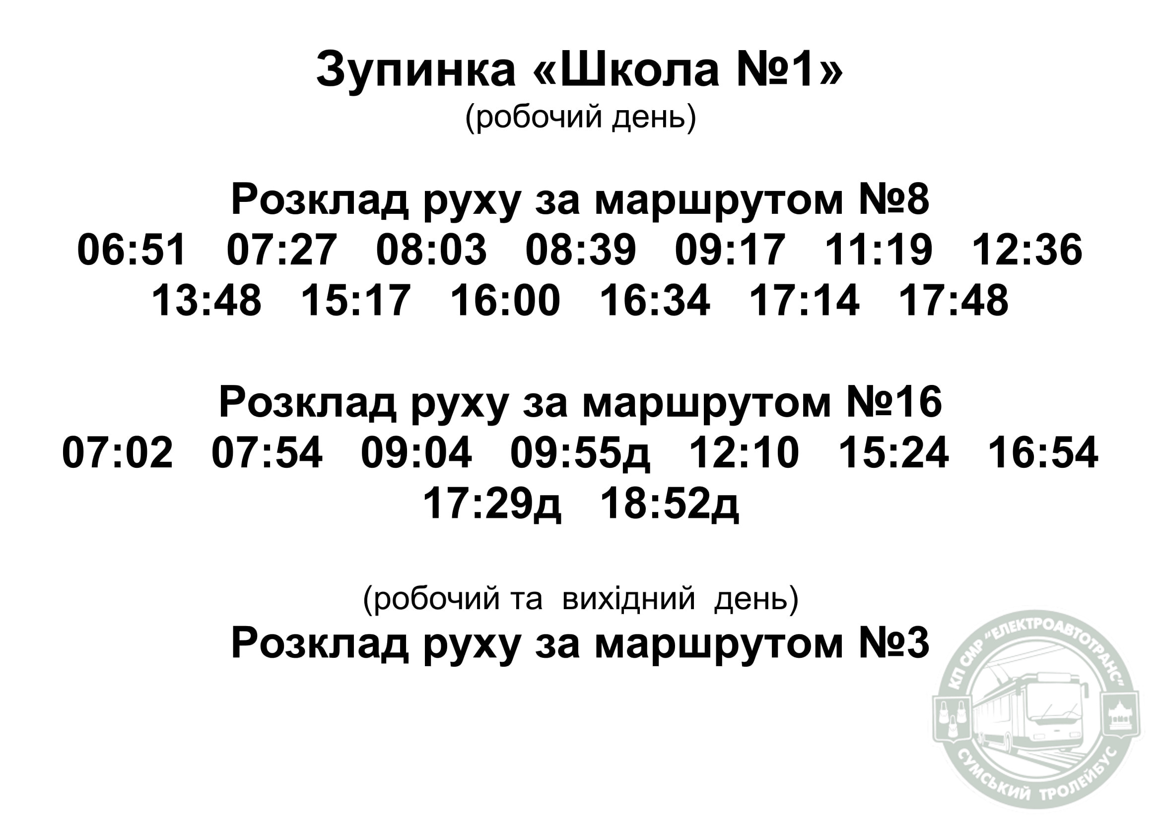 Служба руху КП СМР “Електроавтотранс”, реагуючи на звернення пасажирів, продовжує роботу над коригуванням графіків руху комунального транспорту. Попередньо було опубліковано розклади, що містили інформацію про відправлення тролейбусів та автобусів з кінцевих зупинок та зупинок найбільшого скупчення пасажирів Нижче – детальний розклад руху тролейбусів №3 та №4 по кожній зупинці на маршруті. У режимі on-line зміни будуть внесені протягом вихідних. Також продовжується робота по розміщенню друкованих інформерів на зупинках громадського транспорту.